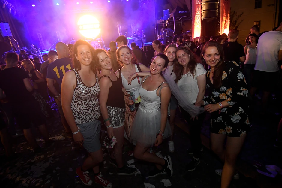 Grupica od nekoliko devojaka ludo se zabavljala na ovoj bini Egzit festivala. Buduća mlada obučena u suknjicu od tila na glavi je imala veo.