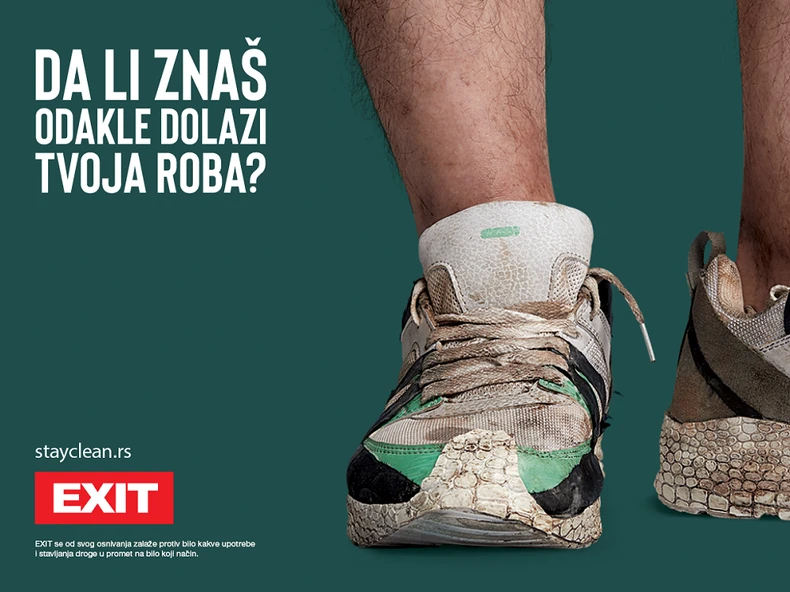 "Ostanimo čisti", poruka je velike nacionalne kampanje za čist život bez narkotika, koju je pokrenula EXIT fondacija uz podršku Ministarstva zdravlja i Telekoma Srbije, te kreativni koncept agencije McCann Beograd i podršku agencije Drive.
