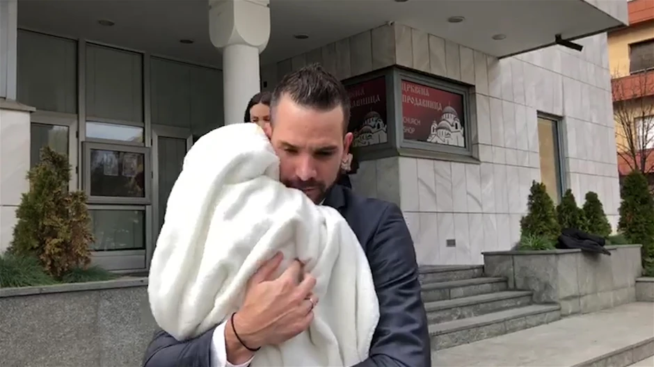 Aleksandra Prijović i Filip Živojinović danas krste sina Aleksandra u Hramu Svetog Save, a pre krštenja su se zajedno sa gostima okupili u parohijskom domu Svetog Save.