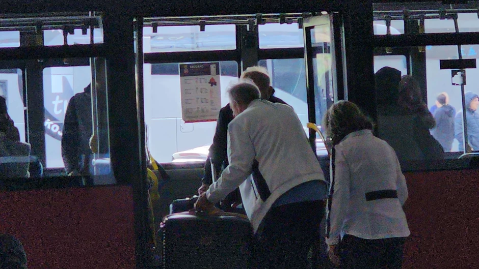 Bojanić je na leđima nosio veću putnu torbu, a onda je ušao u autobus, koji prevozi po aerodromu.