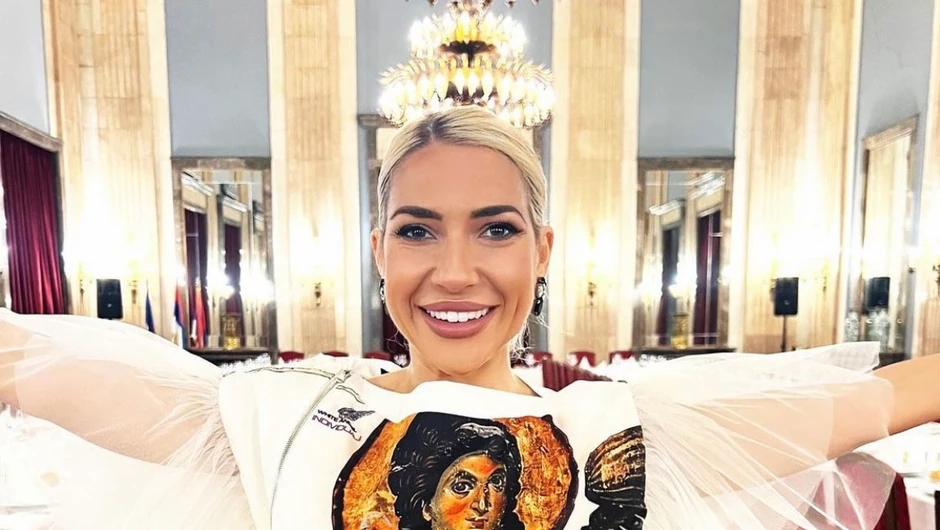 Jeremićeva se, naime, obukla sva u belo, dok je na grudima imala naslikanog Belog anđela, a na rukama karnere koji podsećaju na krila. Raširila je ruke i sa osmehom pozirala.