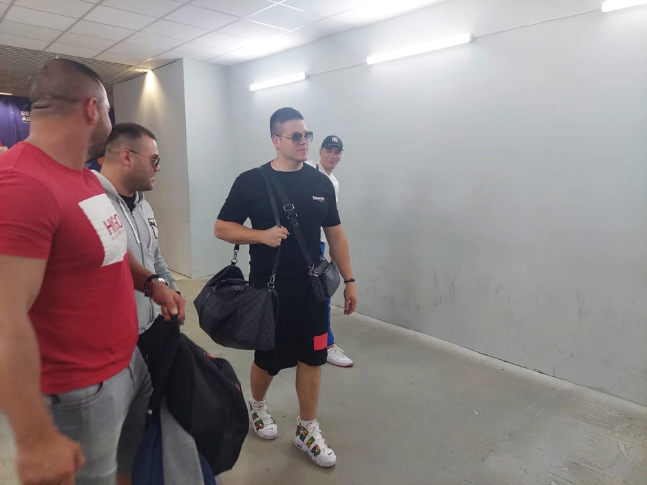 Pevača Slobu Radanovića uslikali smo na aerodromu pri povratku u Srbiju sa nastupa u inostranstvu, a njegov skupoceni stajling nam je privukao veliku pažnju.