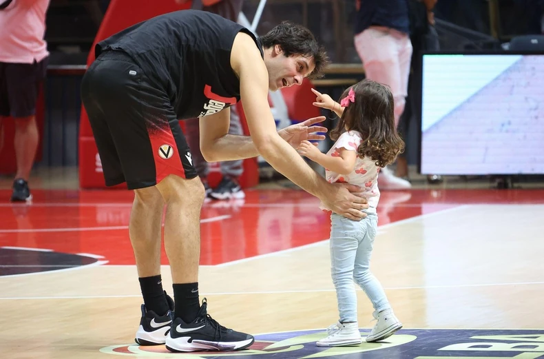 Košarkašu Milošu Teodosiću, koji igra za italijanski klub Virtus Bolonju, veliku podrška na utakmicama pružaju supruga Jelisaveta i njihova petogodišnja ćerka Petra, koju javnost nije imala priliku da vidi do sad.