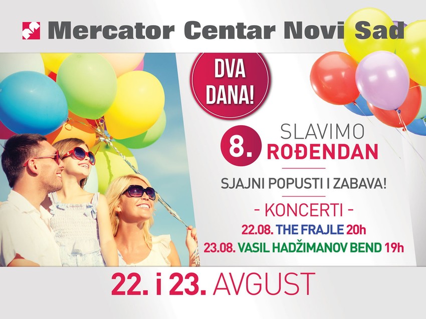 Šarmantne Frajle i prepoznatljiv zvuk Vasila Hadžimanova obeležiće osmi rođendan Mercator centra Novi Sad.