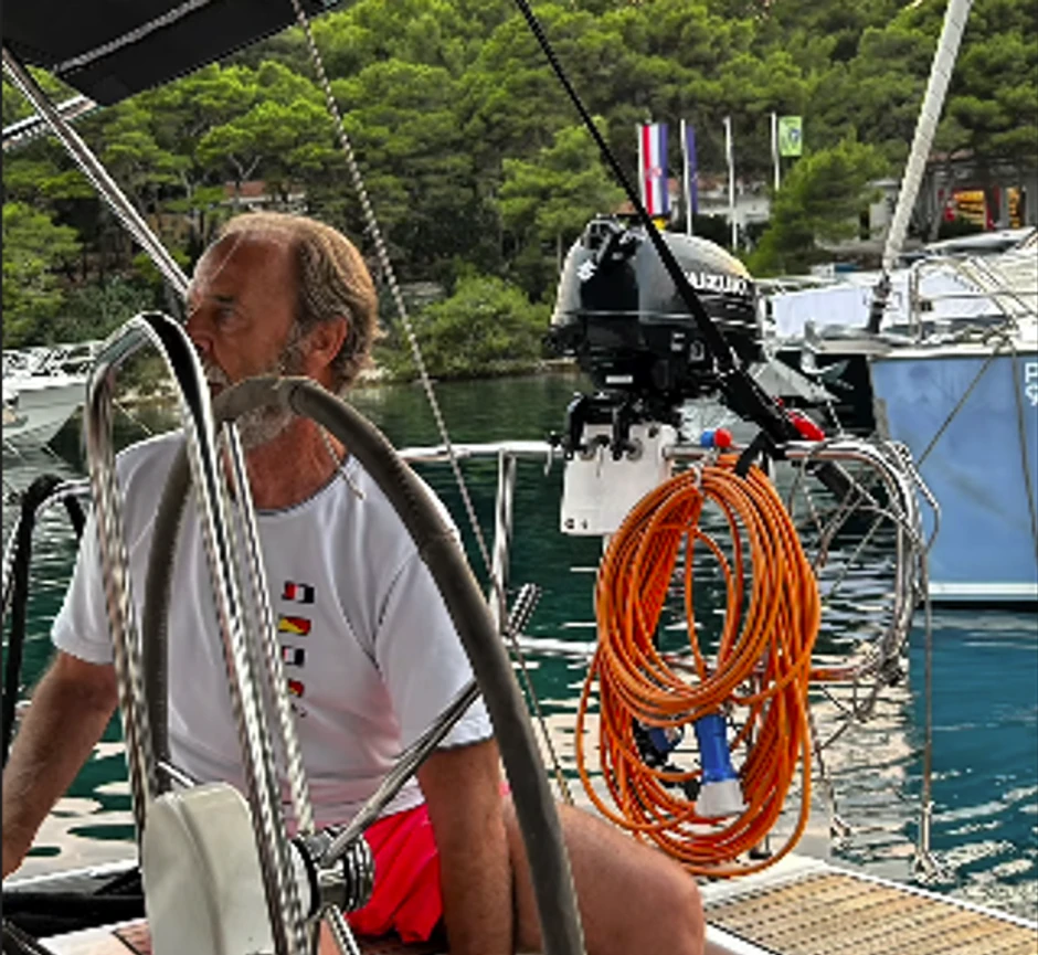 Glumac i muzičar Frano Lasić (70) uživa vozeći se jedrilicom po moru, a društvo mu prave supruga i sin.