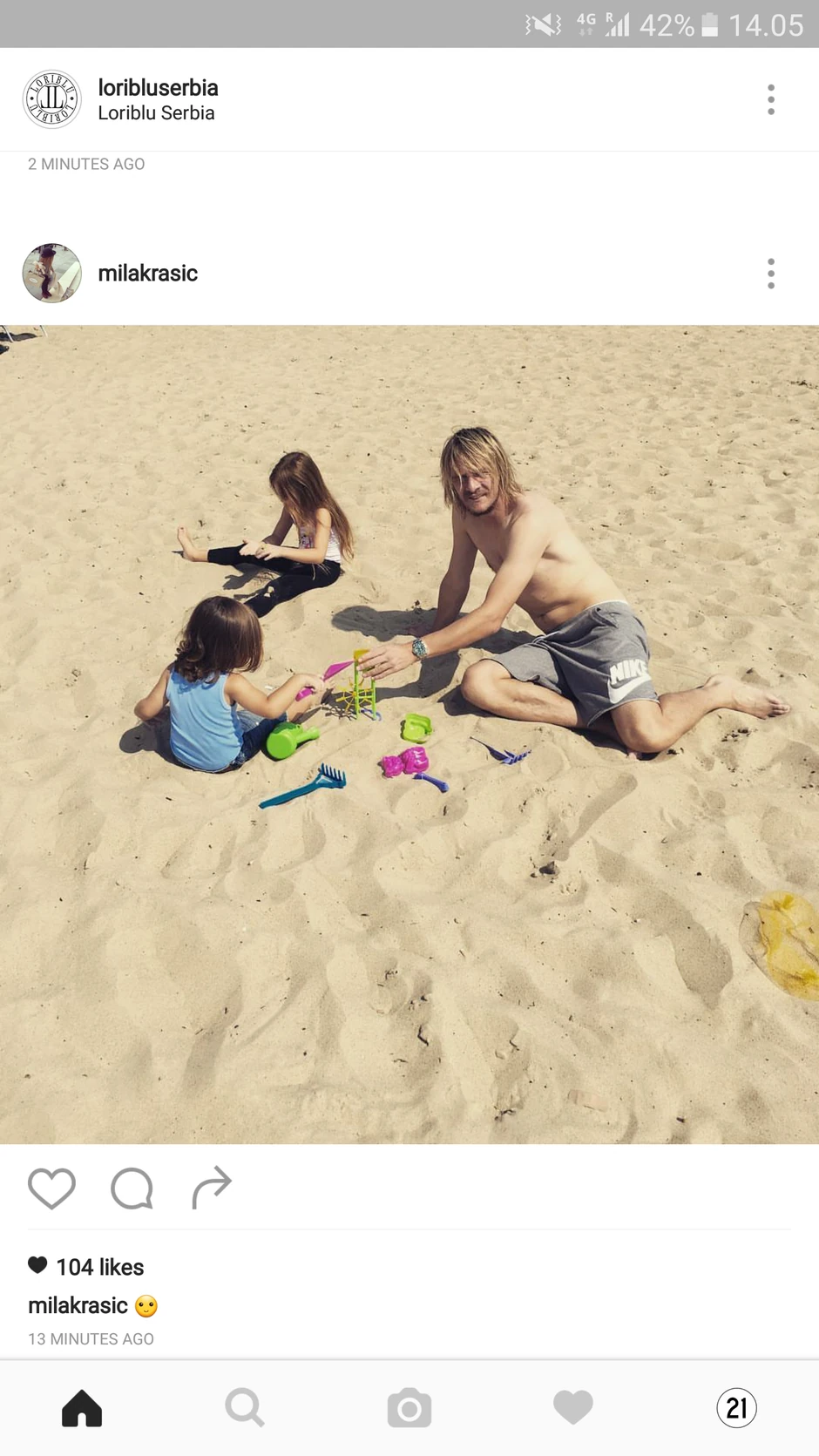 Ko kaže da poznati očevi nisu požrtvovani? Miloš je čitav dan proveo u društvu najmilijih, a deca su ga koristila najviše pri pravljenju kuli od peska.