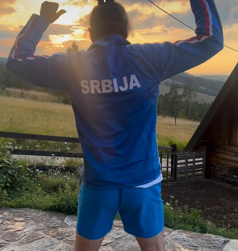 Sada je Gagi Jovanović igrao Užičko kolo u trenerci na kojoj piše "Srbija" i tako pružio podšku Đokoviću pred početak finala.