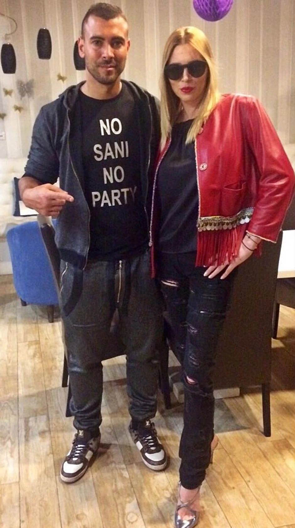 Nakon toga se povukla iz javnosti, a po retko objavljenim fotografijama možemo da vidimo kako danas izgleda. Na slici koju je Uroš Ćertić, kaskader i bivši učesnik Velikog brata objavio pre izvesnog perioda vidi se da se i dalje druži sa Sandrom. Zanimljiva je i majica koju Ćertić nosi, a na kojoj piše: "No Sani, no party".