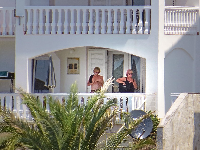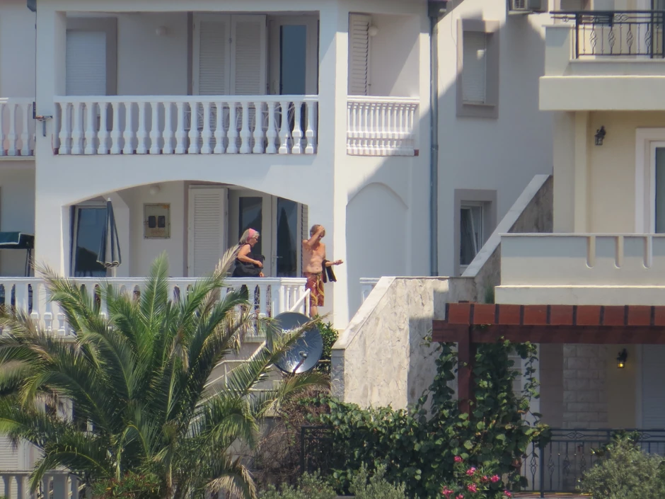 Naš paparaco fotografisao je njih dvoje u porodičnoj kući, ali zatim i Žiku koji je način da se rashladi našao u hladnom piću. Karolina, koja i posle tri godine od Borine smrti nosi crninu, izašla je iz kuće da bi otišla do lokalne prodavnice, u kojoj se zadržala kratko. Po povratku je sela na terasu, sunčala se i čitala knjigu. Sudeći po tome koliko se dugo zadržala, reklo bi se da joj topli avgustovski dani i te kako prijaju. U jednom trenutku Karolina je uzela i dvogled da bi imala pregled šta se dešava na plaži, ali i u ostalim delovima ovog malog ribarskog mesta.