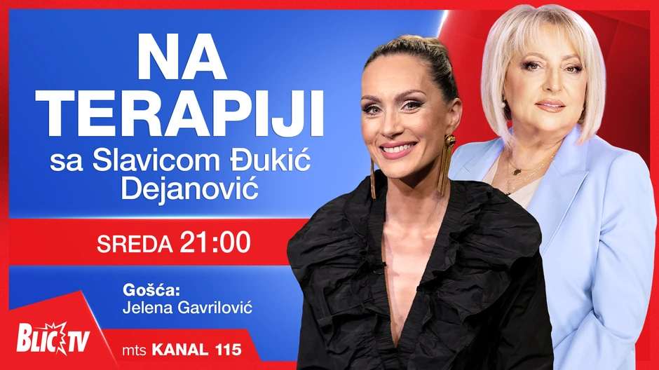 Glumica Jelena Gavrilović gošća je emisije "Na terapiji sa Slavicom Đukić Dejanović" koja se emituje samo na Blic televiziji na MTS kanalu 115, sredom u 21 sat u kojoj otvoreno govorio o svom životu, svojim ulogama, svom glasu koji je pozajmila i za crtani na kom su odrasle mnoge devojčice, o lepim i onim manje lepim trenucima zbog kojih se u jednom trenutku i rasplakala.