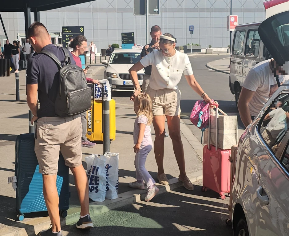 Pevačica Katarina Grujić i njen suprug, fudbaler Marko Gobeljić, bili su danas na beogradskom aerodromu sa ćerkicom Katjom.