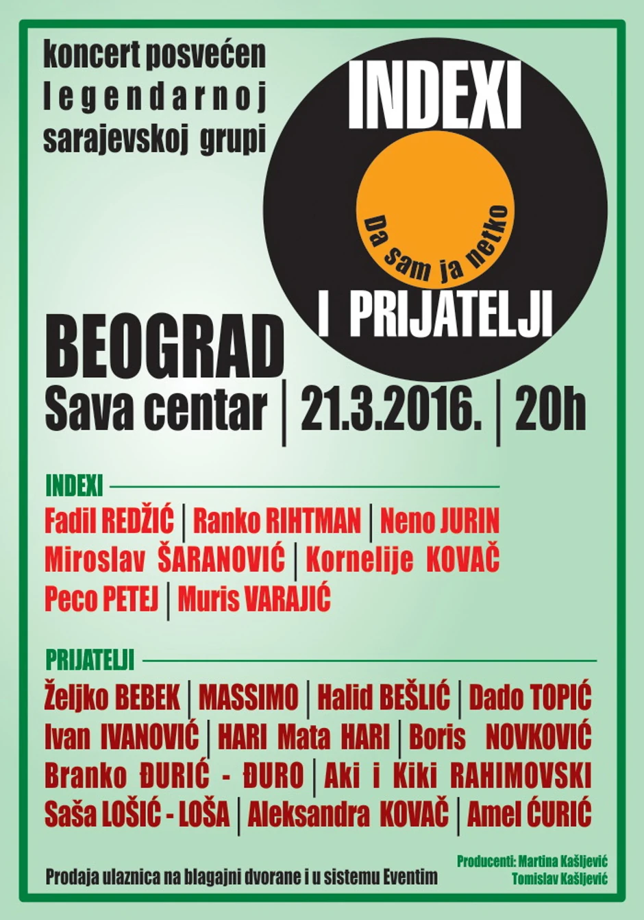 Koncert "Indeksi i prijatelji" biće održan 21. marta u Sava centru.