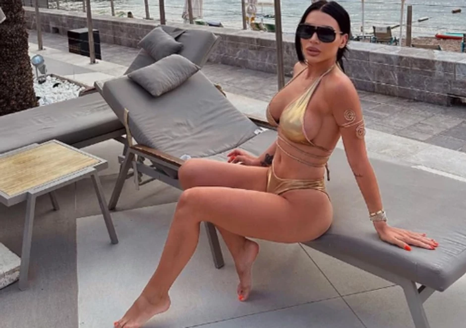 Helena se odlučila za bikini zlatne boje sa trakama oko stomaka, na ruci je imala zlatni nakit, a svi su gledali u neno izvajano telo kao da se nikada nije porađala, a u bujno poprske mnogi su ocenili sa čistom desetkom.