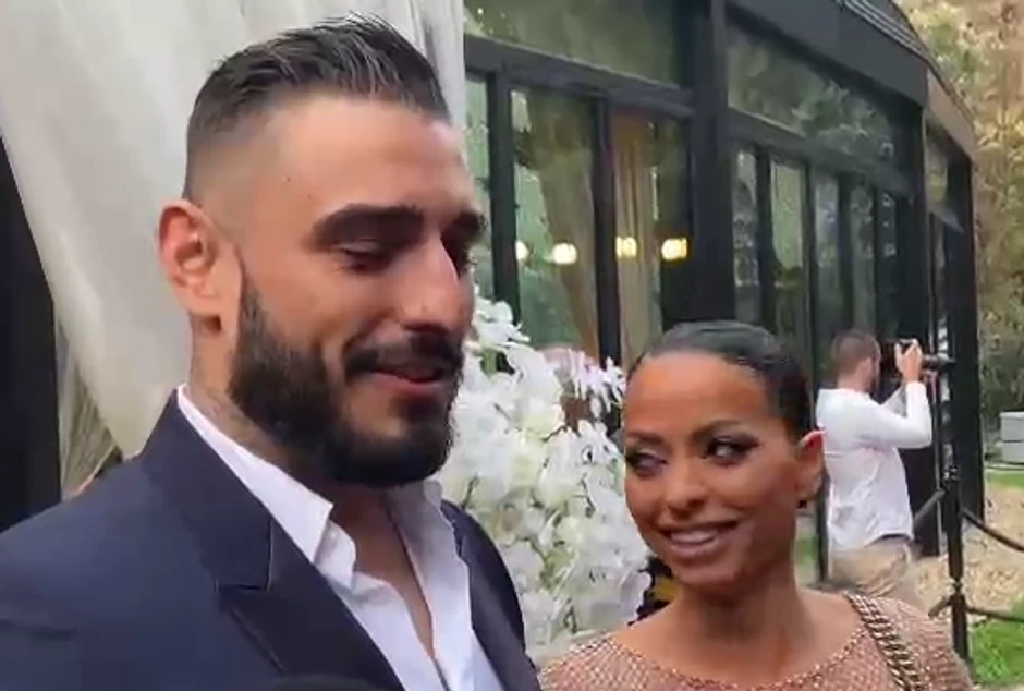 Na pitanje da li je on sledeći koji će se oženiti, pevač je odgovorio "Ako Bog da", dok se njegova izabranica samo smeškala.