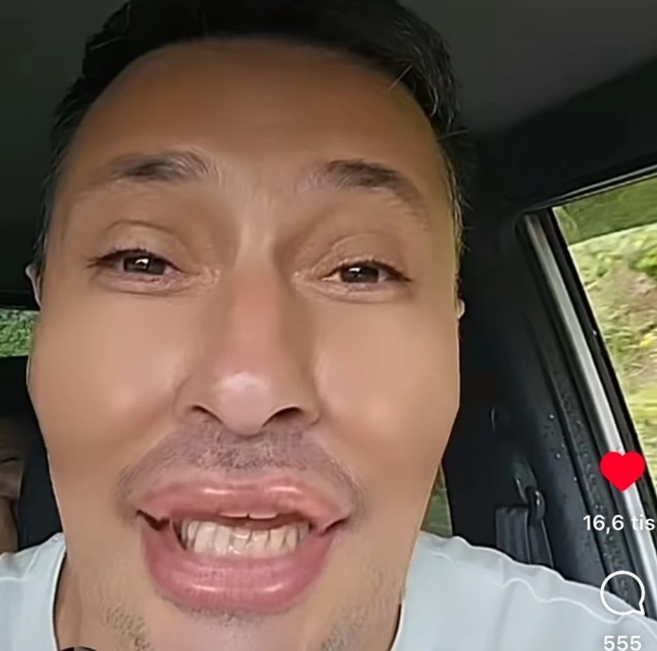 Naime, on se snimio u automobilu koristeći filter "napumpanih" usana i izobličenog lica od botoksa, praveći šaljive komentare i nasmejavajući svoje pratioce.