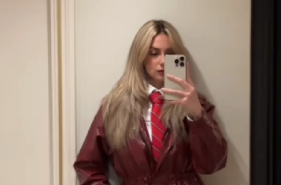Ona je pozirala u crvenom kožnom odelu, a preko bele košulje stavila je kravatu što je mnoge iznenadilo.