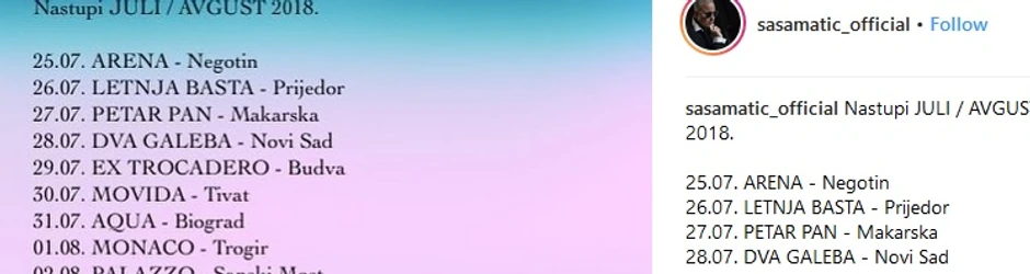 Da će nastupati na tamošnjoj Jadranskoj obali otkrio je na svom profilu i Saša Matić.