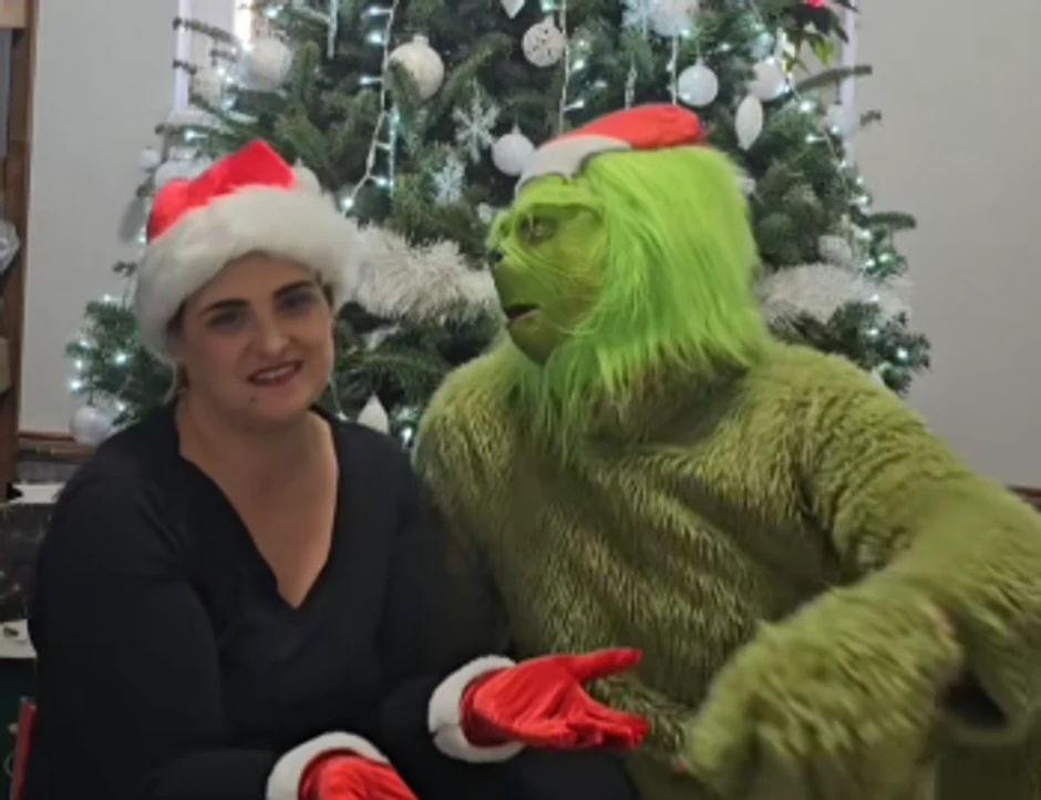 Njih dvoje su se snimali ispred jelke, ona je bila prerušena u deda mrazicu, dok je on na sebi imao kostim crtanog junaka Grinča.