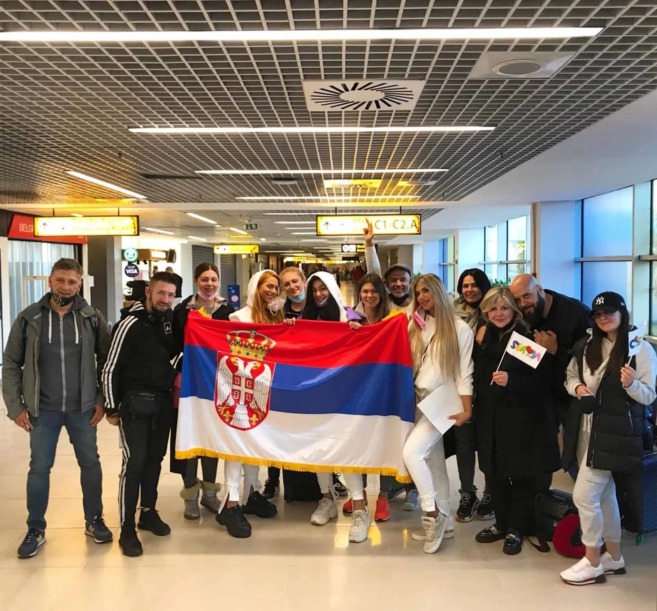 Njih tri su se sa ekipom, koja putuje sa njima, slikale na aerodromu noseću srpsku zastavu u rukama. Naime, sve tri su bile u uskim belim uskim trenerkama, te su fanovima pozirale sa osmehom na licu.