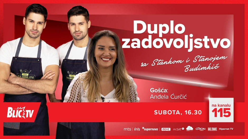 Ove subote domaćinima emisije "Duplo zadovoljstvo" društvo i pomoć u kuhinji pravi Anđela Ćurčić magistar hemije, koja se nikada nije bavila tim pozivom, ona zapravo drži časove engleskog i modni je influenser.