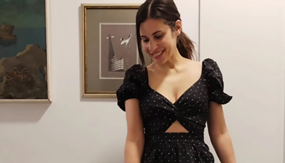 Iskra je na sebi imala lepršavu haljinu sa prorezom ispod grudi, a u opisu slika je napisala sledeće: