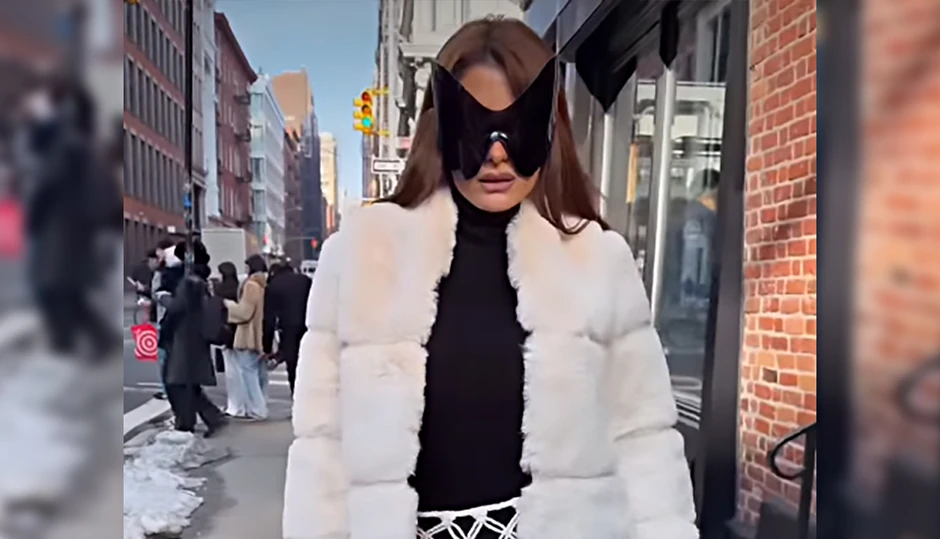 Pevačica je obukla crnu užu rolku, a preko nje kratku, debelu belu bundu od krzna, kao i dugu belu mrežastu suknju u makrame stilu. Suknja je imala velike otvore u obliku rombova, ispod koje se video njen bež donji veš.