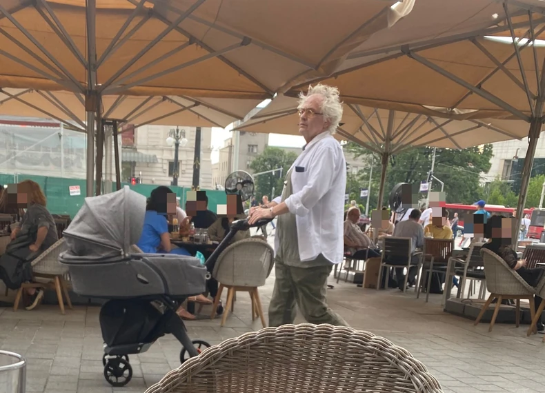 Ivan Tasovac iskoristio je sunčano popodne kako bi prošetao sa sinom. Direktor Beogradske filharmonije centrom Beograda gurao je kolica u kojima je bezbrižno spavao njegov petomesečni naslednik Luka.