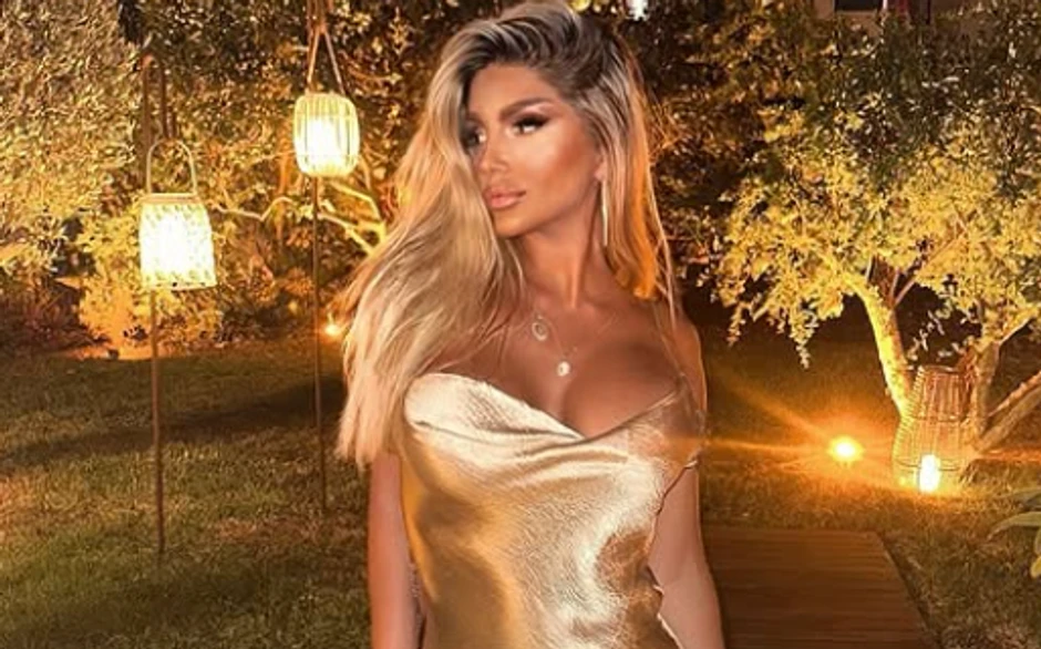 Za ovu priliku voditeljka je odabrala zlatnu haljinu do poda koja je imala duboki dekolte, pa su njene silikonske grudi bile u prvom planu. Ona se oglasila i iz restorana i pokazala luksuz u kom uživa.