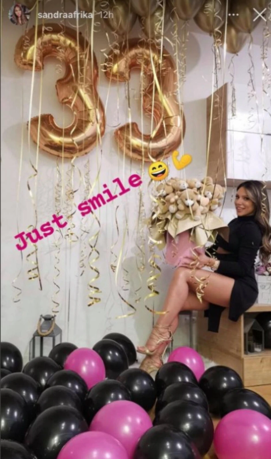 Pevačica Sandra Afrika proslavila je svoj 33. rođendan u krugu najbližih, a na svom Instagramu podelila je fotografije sa slavlja, dok su se čestitke samo nizale.