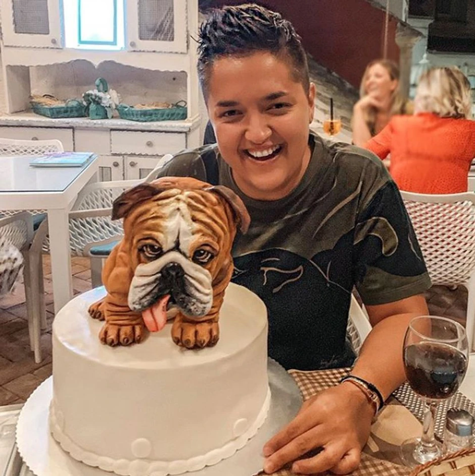 U pitanju je torta sa likom njenog psa, kojeg, kako se već zna, obožava, a pevačica je imala osmeh od "uva do uva".