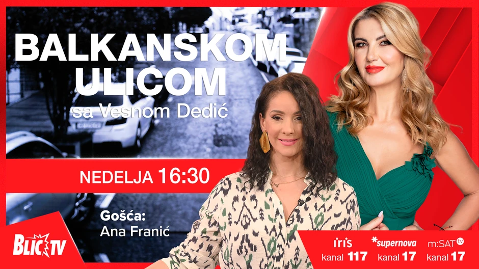 I ove nedelje u 16.30 sati samo na Blic televiziji na MTS Iris TV kanalu 117 gledajte emisiju "Balkanskom ulicom" autorke i voditeljke Vesne Dedić u kojoj je gošća glumica Ana Franić koja otvoreno priča o svom životu, preseljenju zbog ljubavi ali i povratku u Beograd.