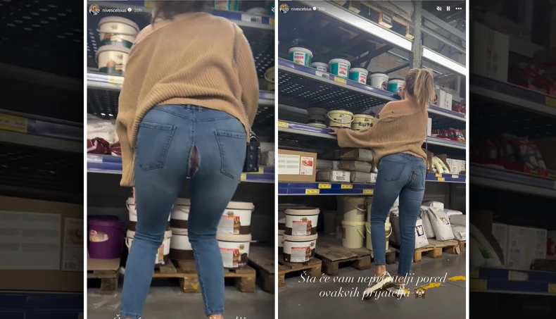 Nives Celzijus je bezbrižno gledala po policama, a nije primetila da su joj u jednom trenutku pukle farmerke. Ovaj detalj video je njen prijatelj koji je odmah sve snimio.