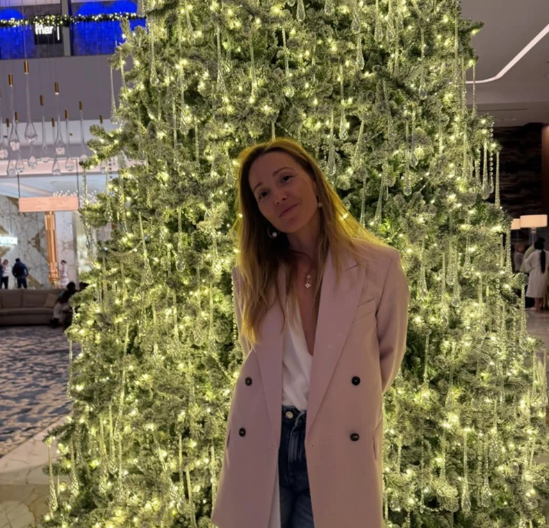 Jelena Đoković je bila u poseti prijateljima na katolički Božić, gde se sjajno provela, ali, kako je napisala, i prejela. Ona je pozirala u farmerkama, beloj majici i roze sakou, a iza njen je bila ogromna jelka ukrašena ukrasima u obliku ledenica.