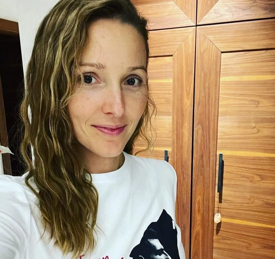 Jelena je, naime, pozirala bez šminke, sa talasima u kosi i beloj majici na kojoj je natpis privukao veliku pažnju.