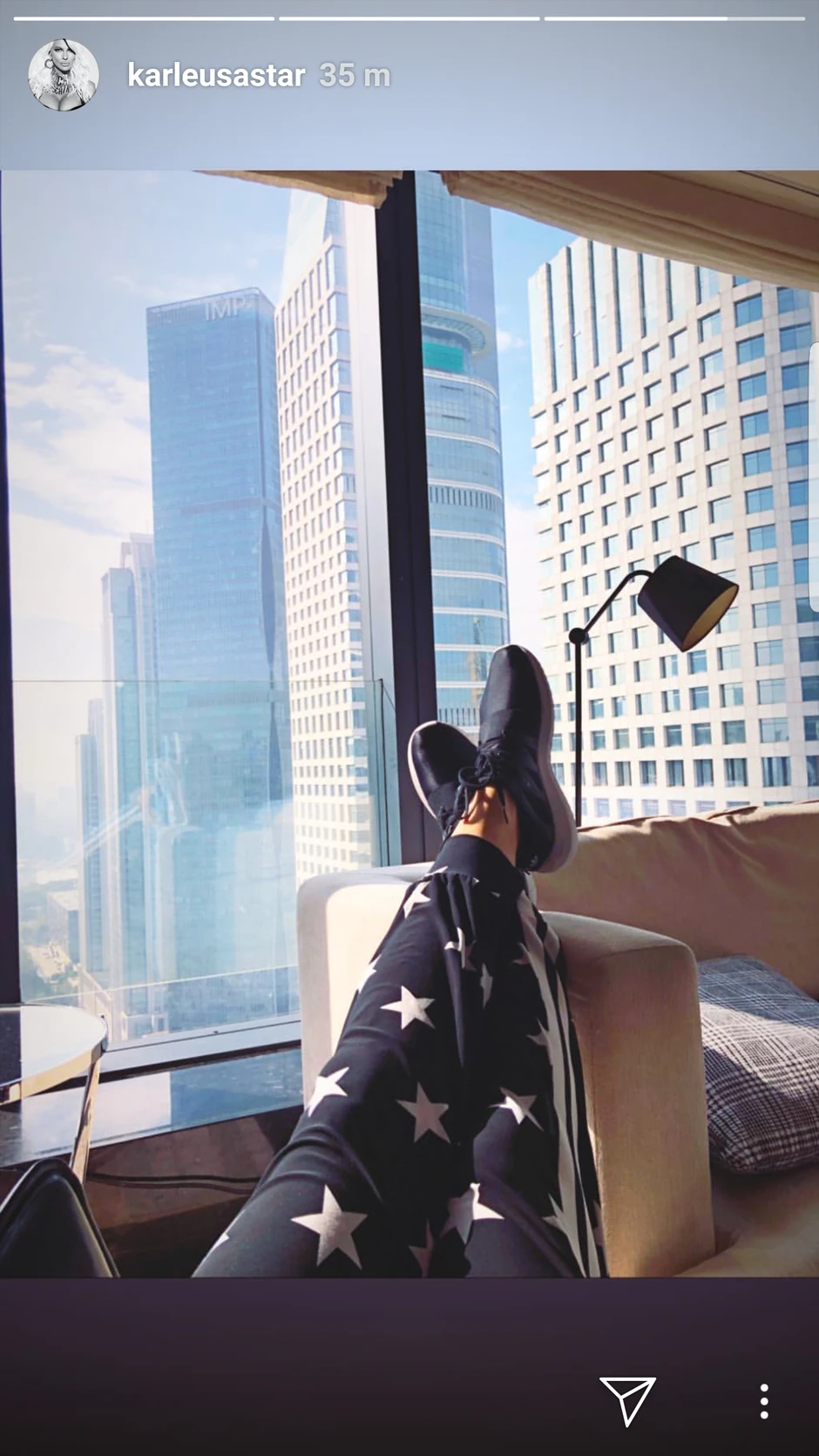 Jelena je juče ujutru pozdravila fanove na Instagramu fotografijom iz Kine na kojoj je digla noge na trosed, a danas je Vranješ postavio veoma sličnu fotografiju na svoj profil na istoj društvenoj mreži.