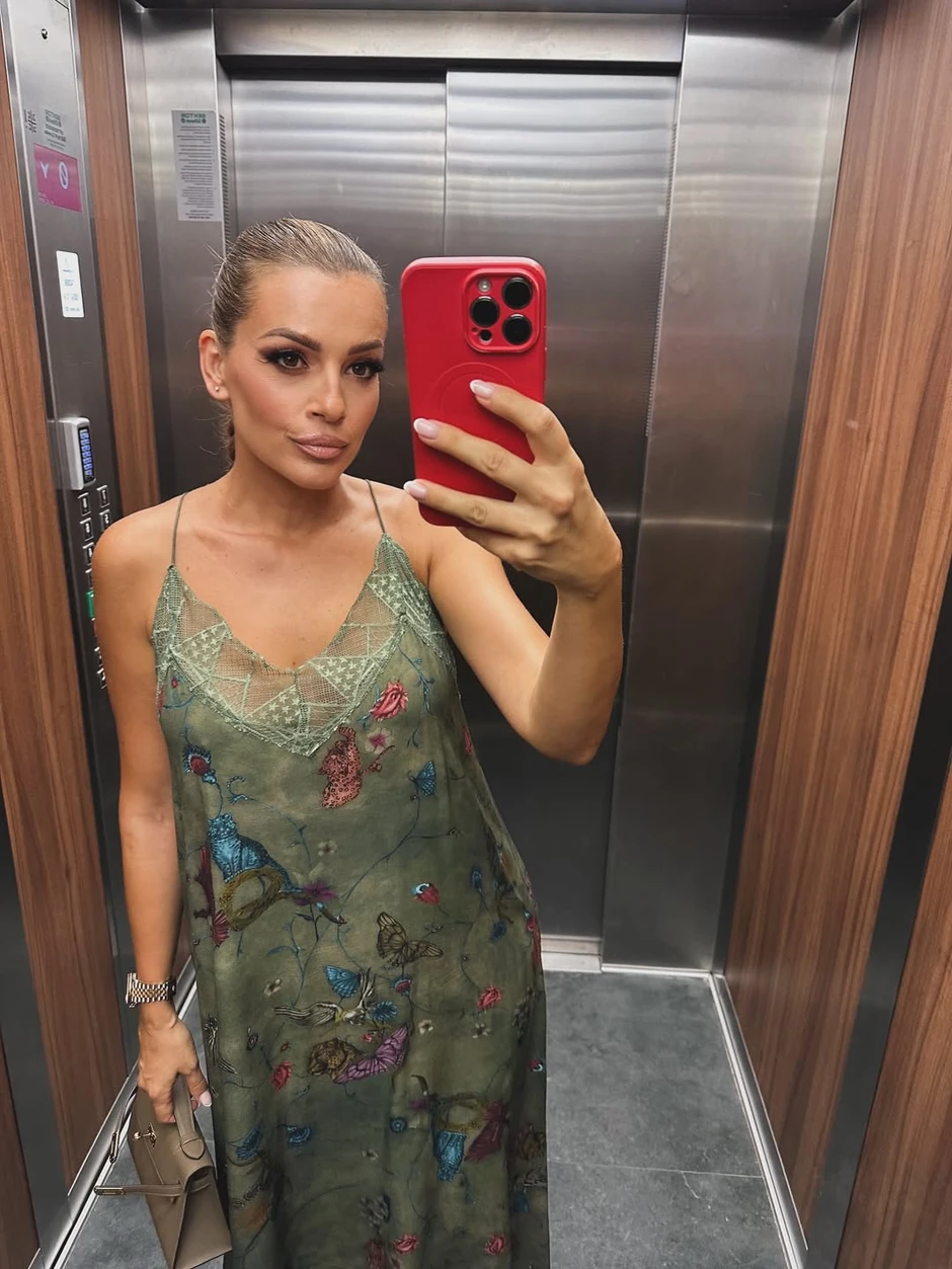 Pevačica Jelena Kostov objavila je selfi iz lifta, a na sebi je imala elegantnu haljinu sa providnim delovima, dok ispod nije nosila brushalter.