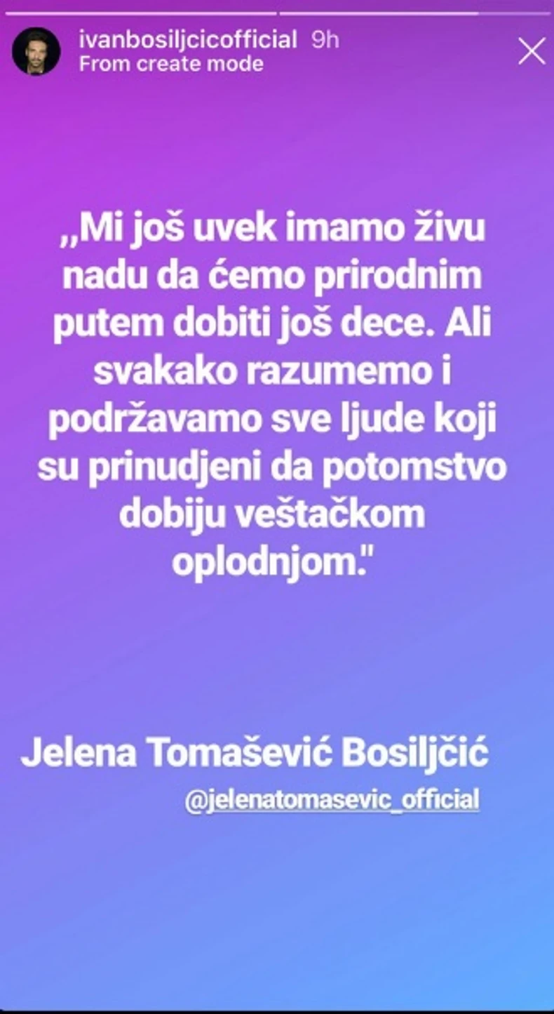 Podsetimo, Jelena Tomašević i Ivan Bosiljčić su nedavno otkrili da bi voleli da dobiju još jedno dete.