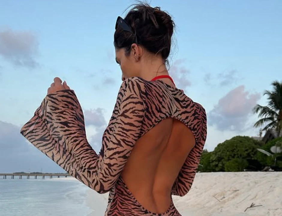 Pozirala je u providnoj tigrastoj haljini do poda sa golim leđima, a ovo izdanje je izazvalo mnoštvo komentara među Instagram korisnicima.