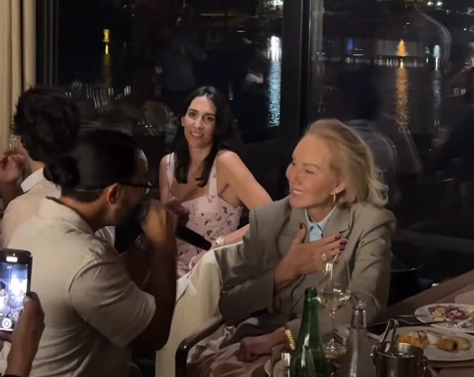 Lepa Brena je uživala dok joj je kolega pevao, a za susednim stolom su bili Jelisaveta Orašanin i njen suprug Miloš Teodosić koji je inače bio kum na venčanju kod Aleksandre Prijović i Filipa Živojinovića.