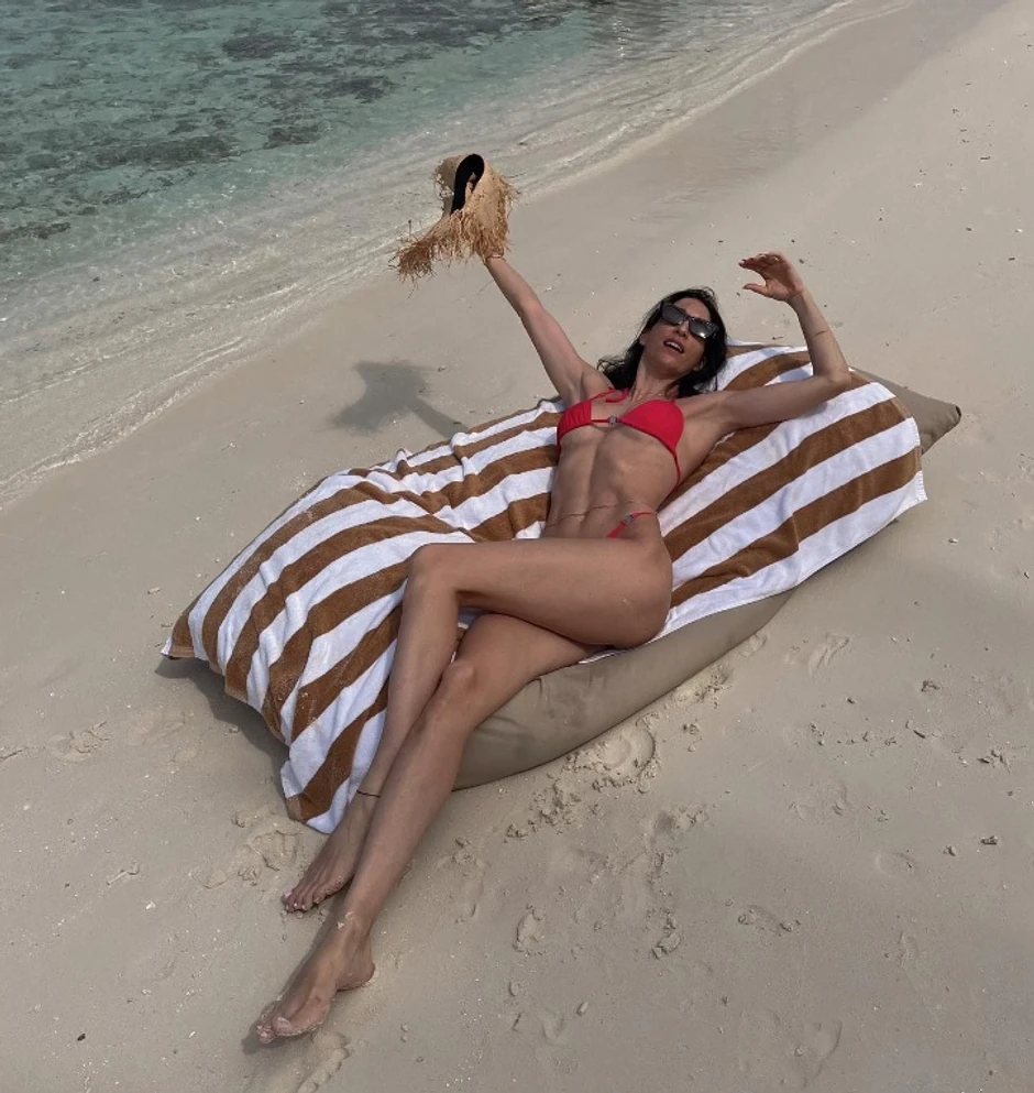 Ona se ne libi da pokaže svoje zgodno telo, te je fotografijama sa Maldiva napravila opštu pometnju. Sada je na plaži pozirala u crvenom kostimu sa tračicama i izazvala brojne reakcije: