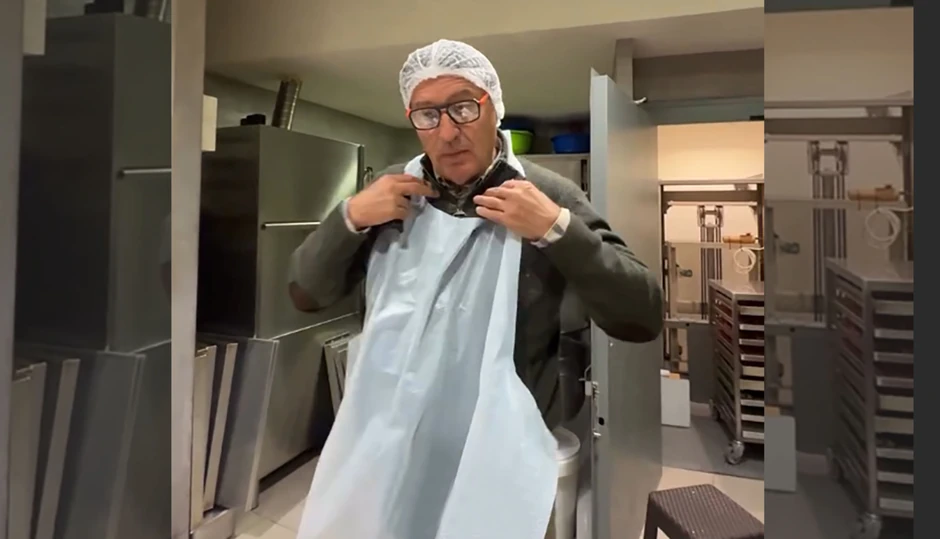 Jovan Memedović stavio je kuvarsku kapu i kecelju pa se bacio na posao spremanja baklava. Ovu situaciju snimila je njegova ćerka Maša.