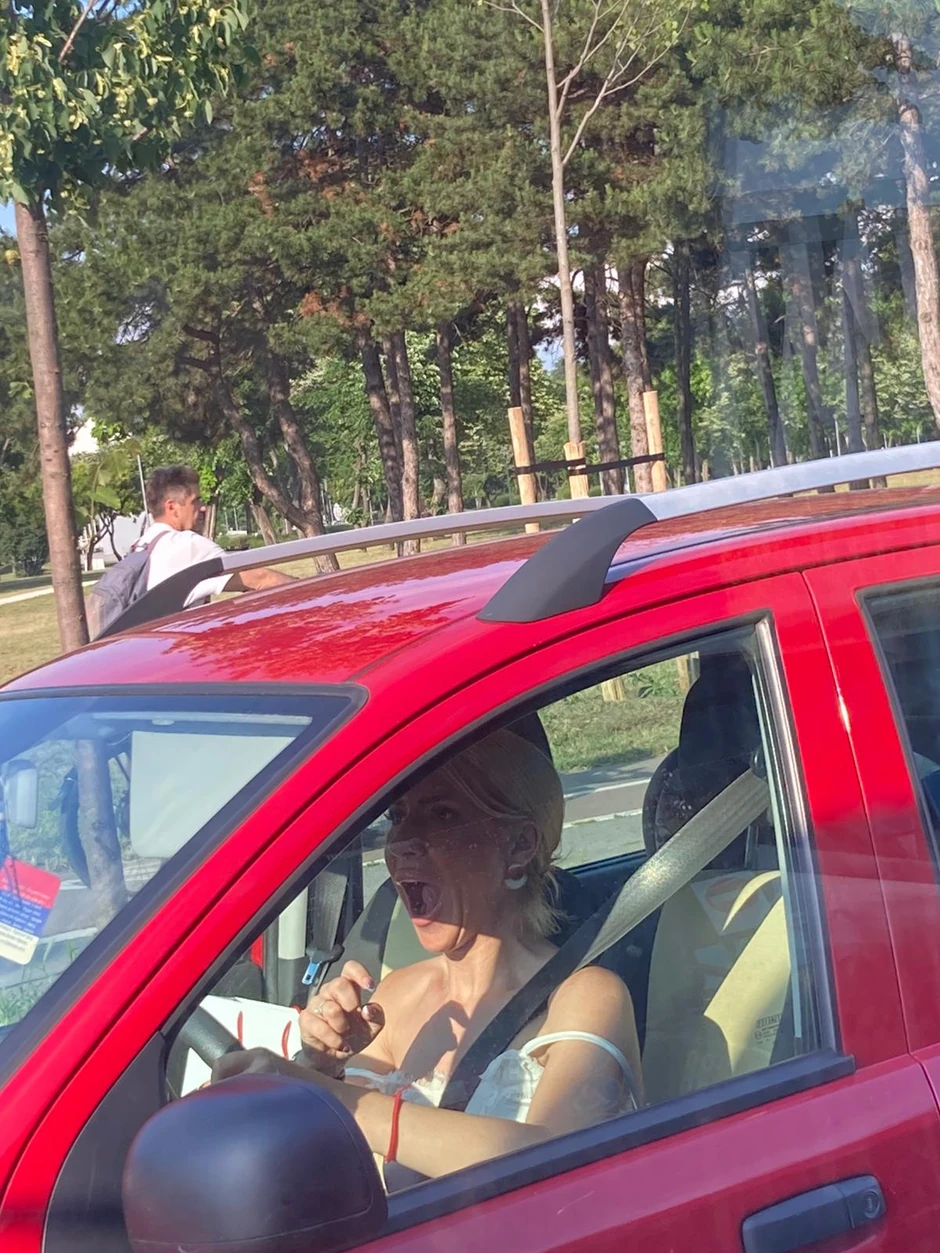 Naime, Jovanu smo pre par dana uslikali dok je vozila Beogradom, a kako deluje, baš pre toga je nešto pojela pa joj je smetalo i non stop se ogledala i pravila hit face.