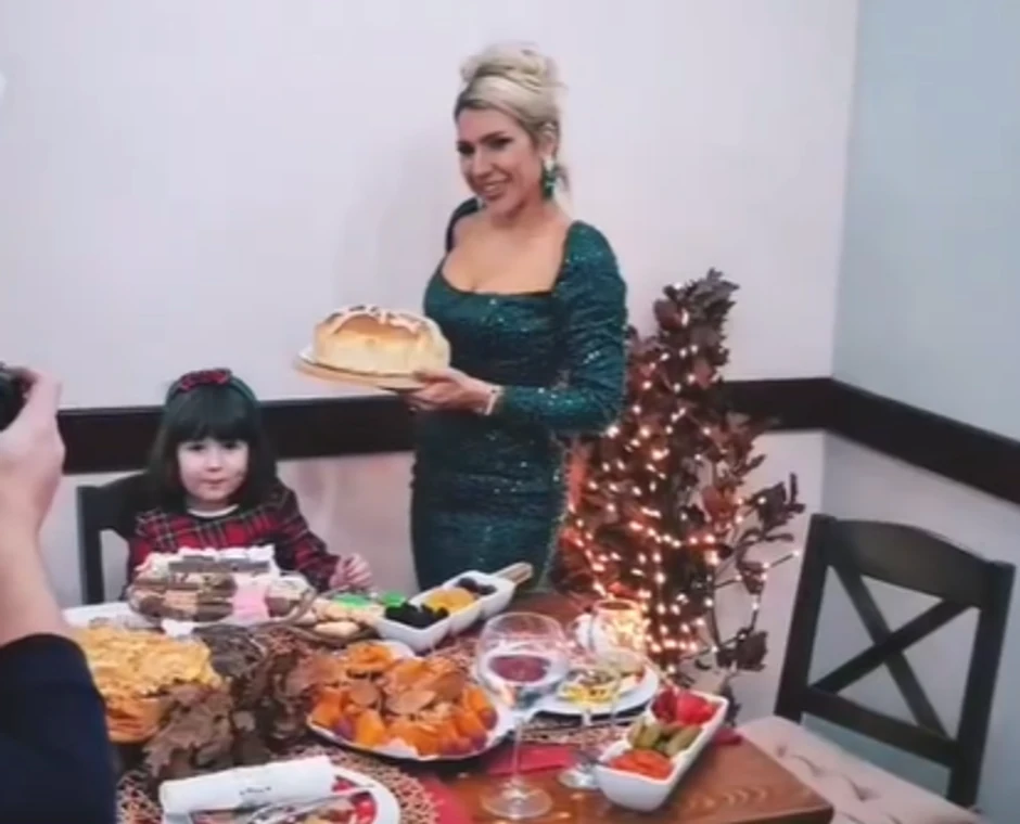 Jovana je na društvenim mrežama pokazala kako proslavlja božićne praznike - kraj ćerkice Lee. Pozirala je u uskoj haljini, sa česnicom u rukama, dok su na stolu ispred nje bile razne đakonije.