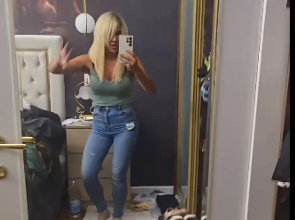 Naime, Jovana je objavila snimak iz spavaće sobe, ona je izgrala i snimala se u ogledalu. Voditeljka je bila vidno nasmejana i raspoložena, a na sebi je imala farmerke i majicu na bretele.