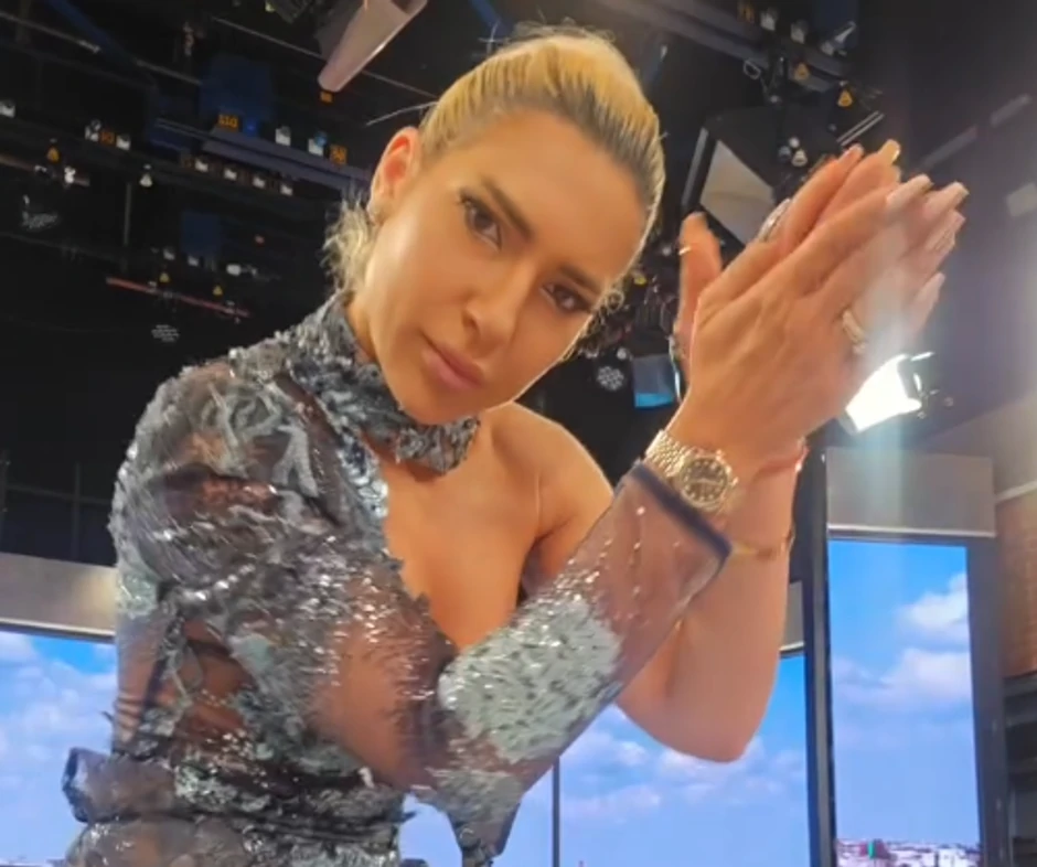 Voditeljka je uvijala kukovima, tapšala rukama u ritmu muzike, spuštala se do poda, a gole noge su bile u prvom planu.