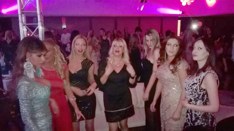 Ana Nikolić je nakon prvog bloka koji je trajao sat vremena, napravila polučasovnu pauzu da bi se presvukla. Najpre je pred goste hotela Metropol izašla u dugoj zelenoj haljini sa šljokicama, a onda se pojavila u takođe dugoj ali zlatoj haljini sa šljokicama.