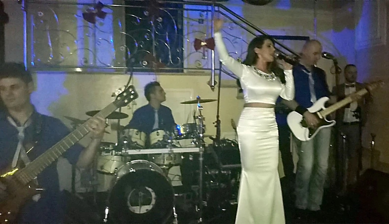 Pevačica je na scenu izašla u beloj haljini, i odmah dala brzi i veseli ritam ovom dočeku a oduševljeni gosti vrlo brzo su se popeli na stolice.