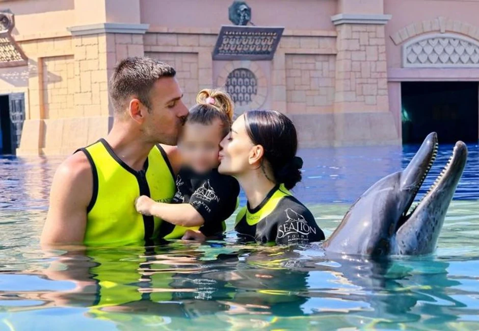 Katarina je na Inastagramu objavila fotografiju na kojoj se vidi kako sa naslednicom uživa u bazenu, dok se obe smeju i plivaju sa delfinom.
