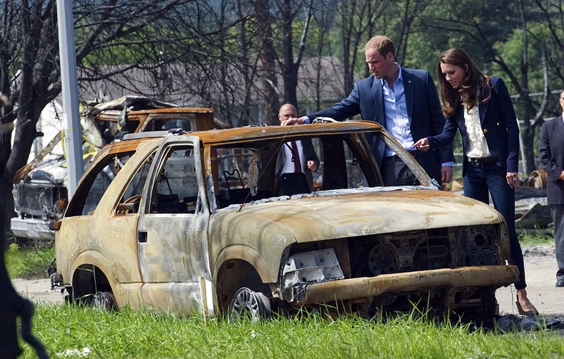 Grad Slejv Lejk broji oko 7.000 stanovnika, a Kejt i Vilijam su doleteli Vladinim avionom tipa Čelindžer. Nakon što je izašao iz aviona, kraljevski par je odmah mini busem otišao da poseti deo grada koji je najviše stradao od požara.