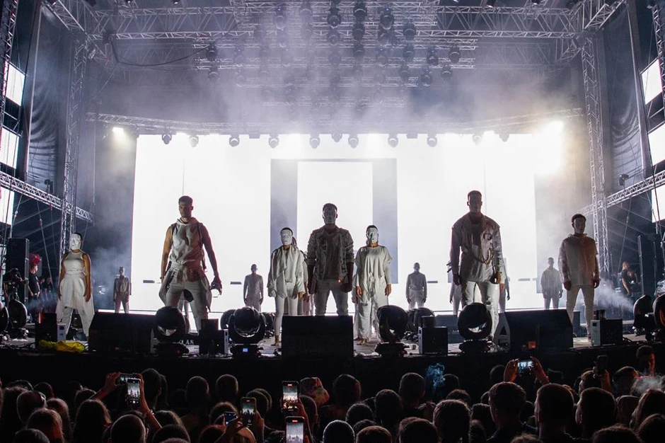 Slobodno se može reći da su članovi ove grupe napravili pravi spektakl na bini. Obučeni u belo, sa maskama na licu i četrdeset igrača pojavili su se na sceni. Zaslužan za njihov stajling i režiju bio je Boris Kargotić, poznati modni dizajner brenda “Demode”.